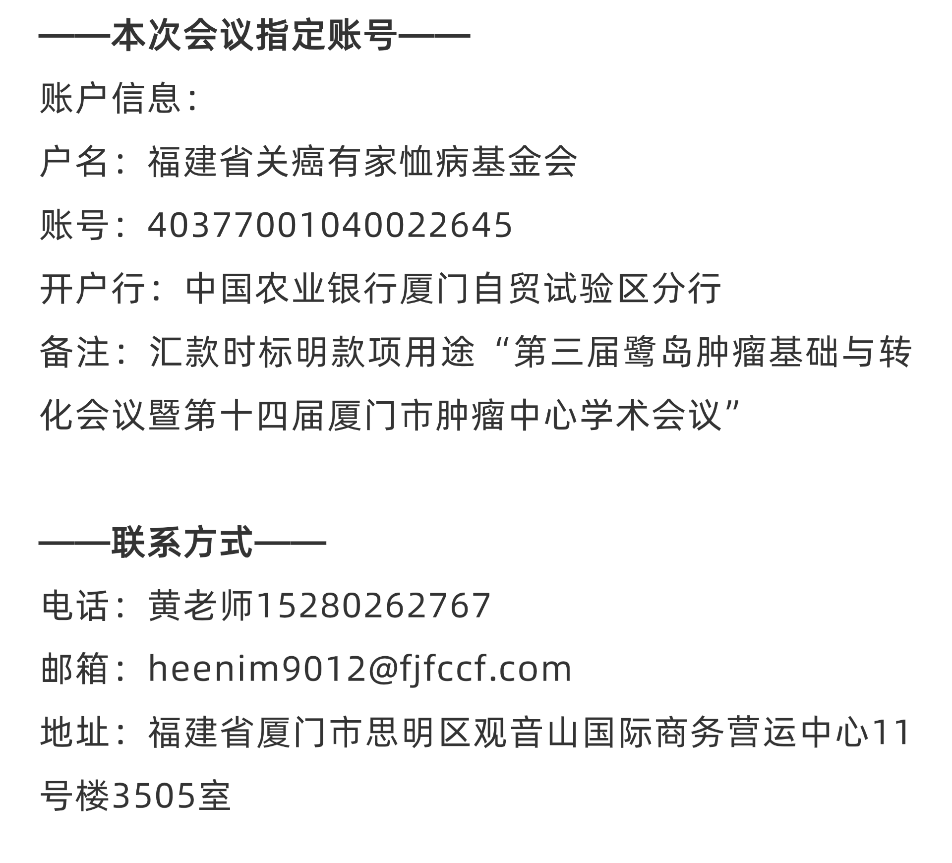 会议公告|第三届鹭岛肿瘤基础与转化会议暨第十四届厦门市肿瘤中心学术会议