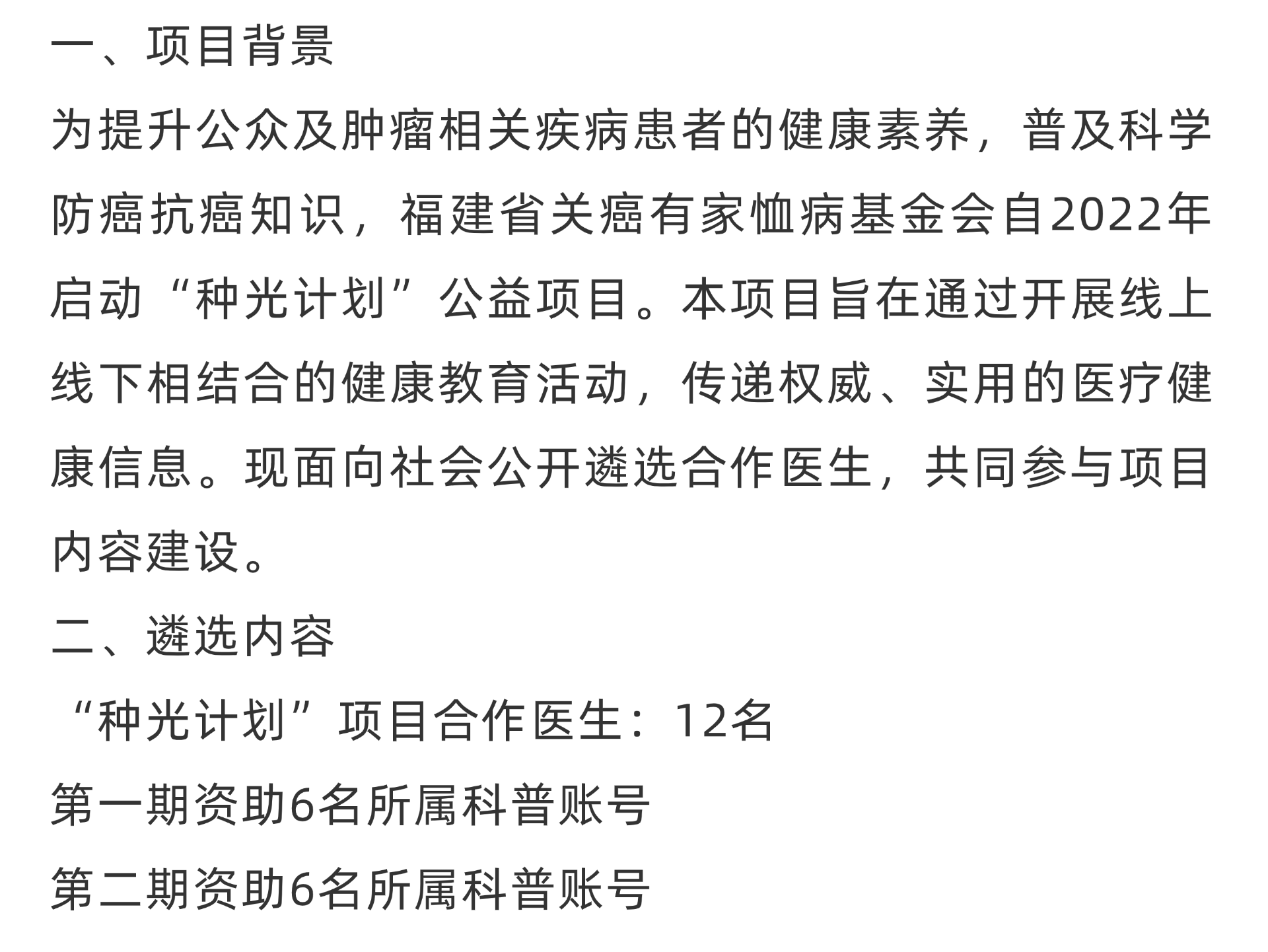 项目公告|福建省关癌有家恤病基金会“种光计划”第一期资助遴选公告