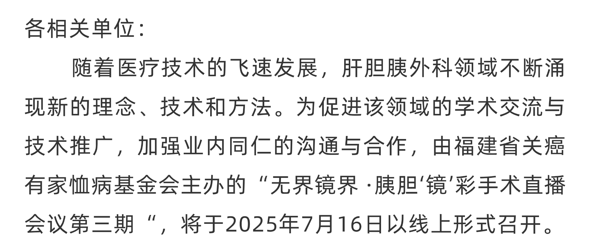 会议公告|关于举办“无界镜界 ·胰胆‘镜’彩手术直播会议第三期”的会议