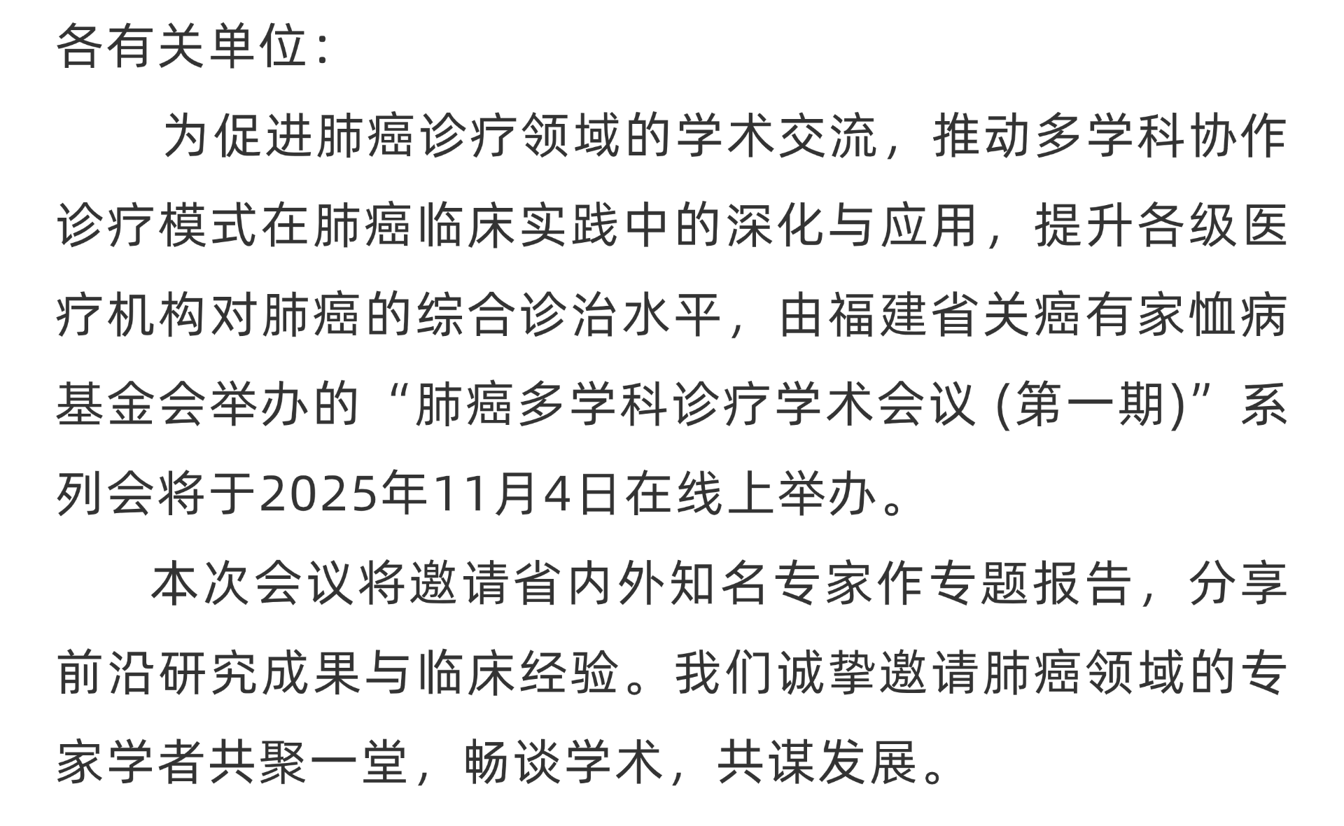 会议公告|肺癌多学科诊疗学术会议(第一期)
