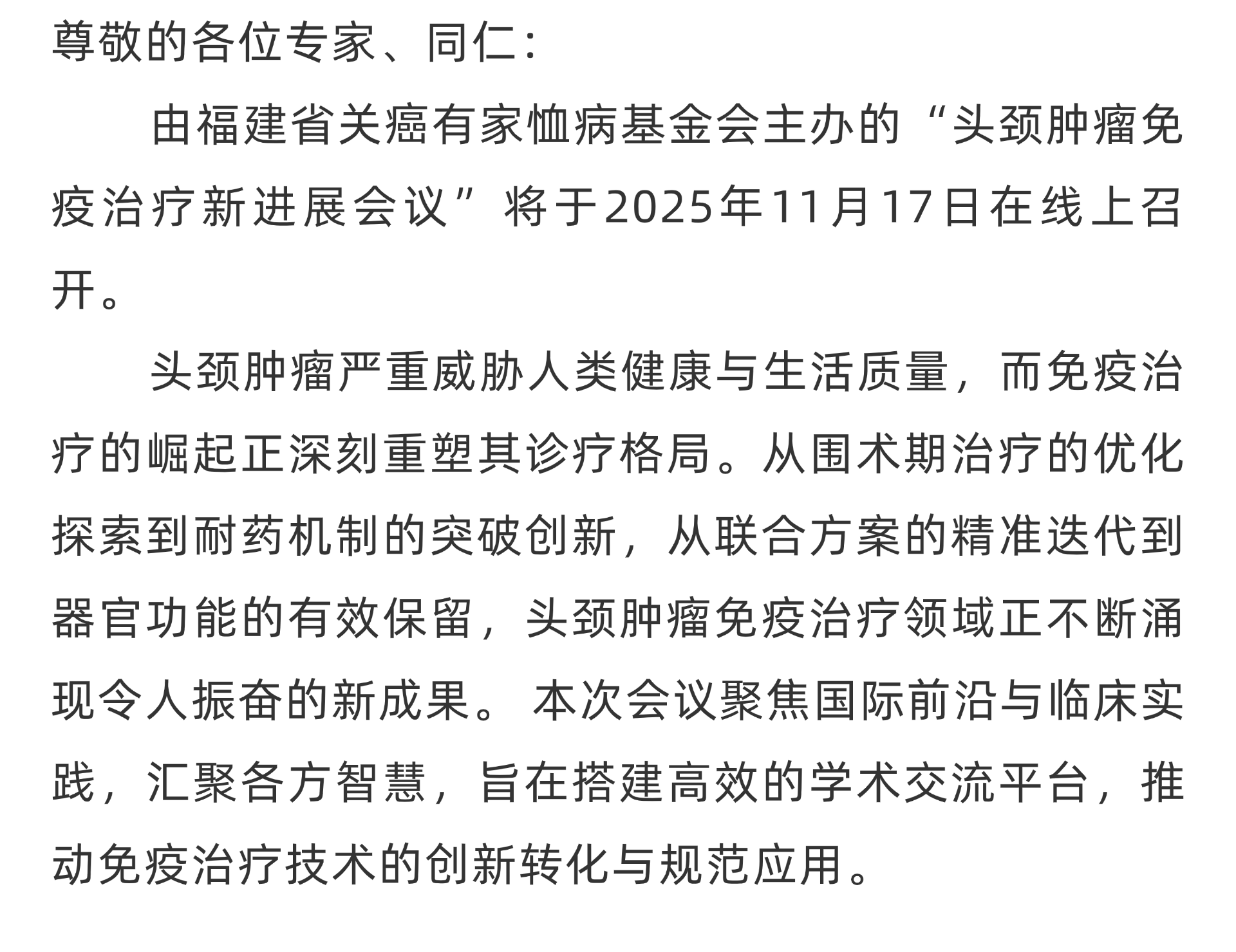 会议公告|头颈肿瘤免疫治疗新进展会议
