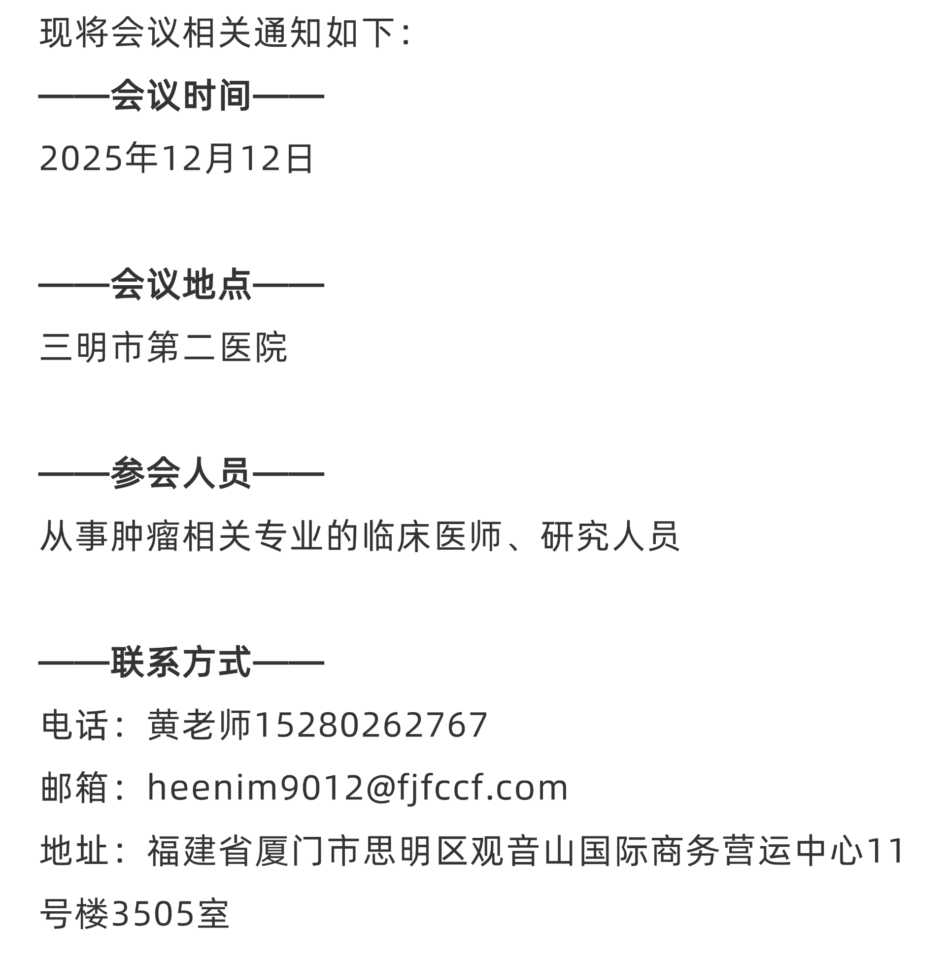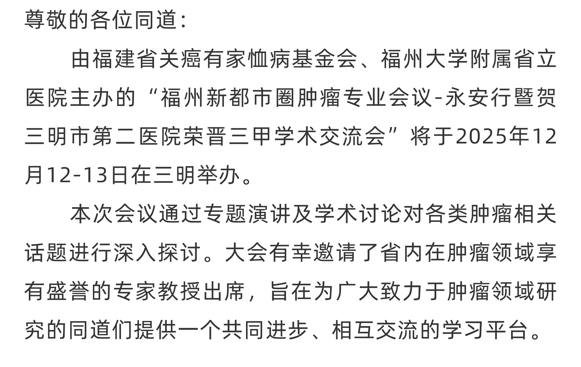 会议公告|福州新都市圈肿瘤专业会议-永安行暨贺三明市第二医院荣晋三甲学术交流会